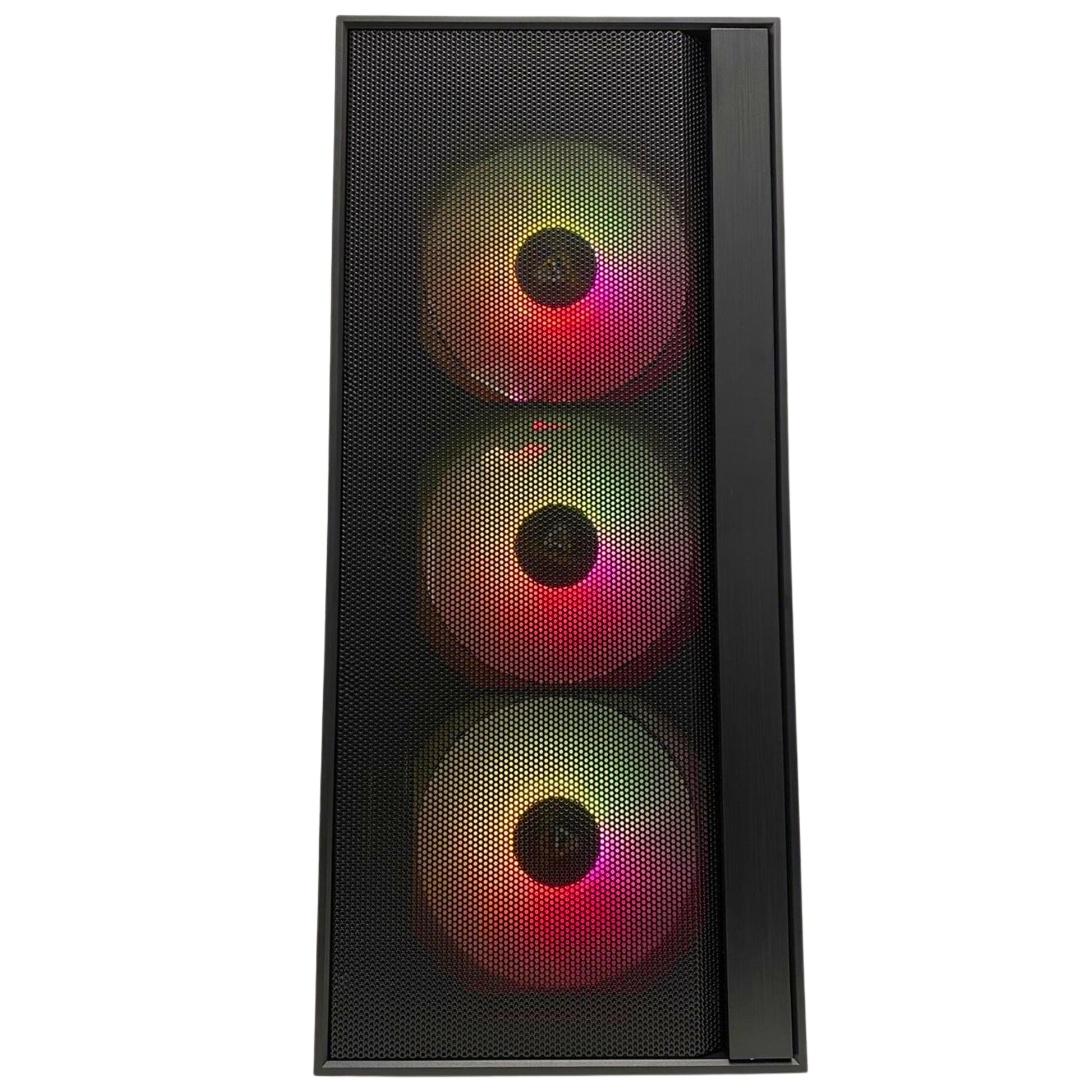 Caja: Torre con vidrio templado, diseño optimizado para ventilación e iluminación RGB espectacular